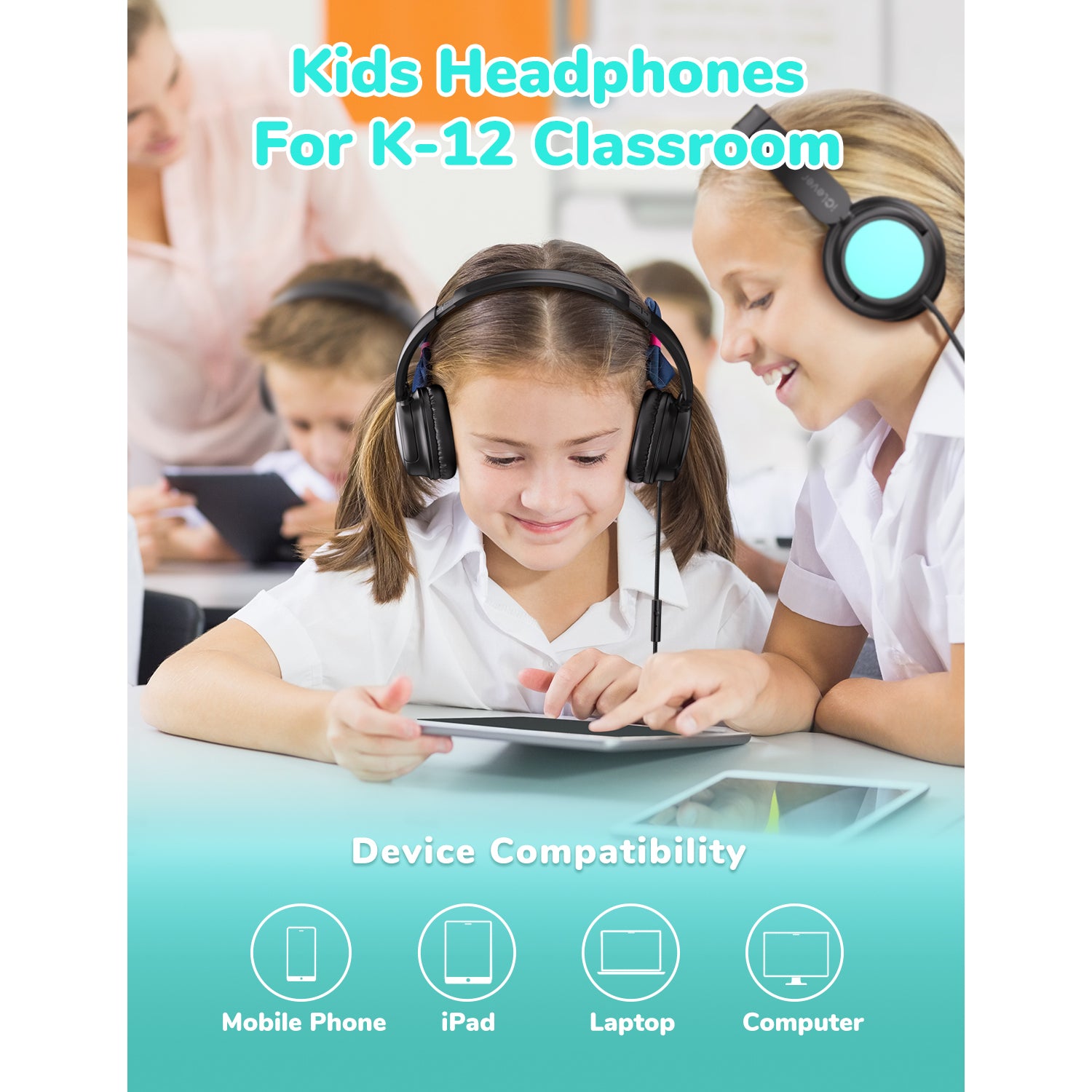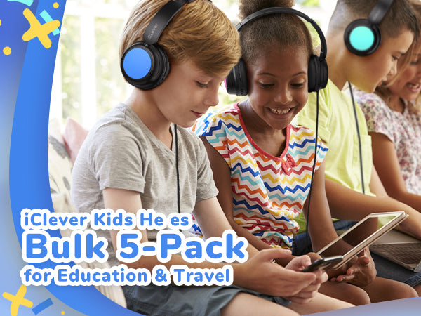 iClever Kids Wired Headphones for K-12 School Bulk 5 Pack HS28